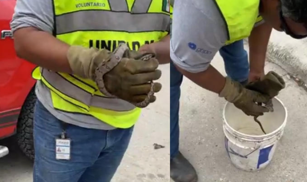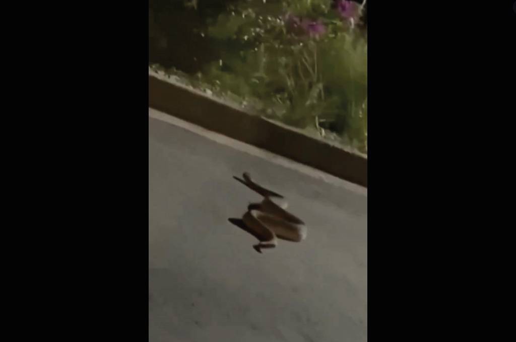Viral: Captan enorme serpiente en avenida de Nuevo León